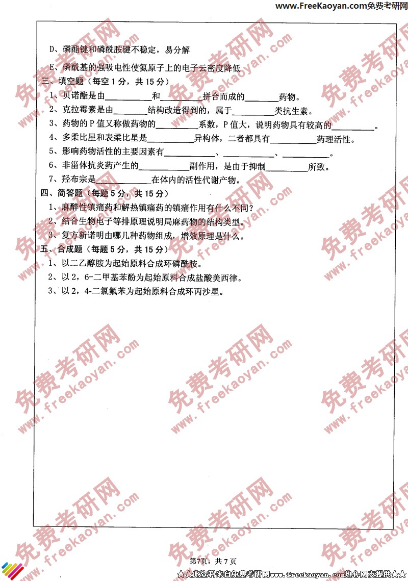 专业课考研经验 本站小编 FreeKaoyan 2018-01-22江苏大学2006年考研真题-药物分析学