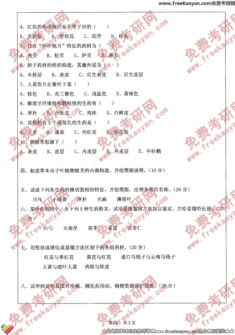 江苏大学2006年考研真题-药用植物与生药学(2)