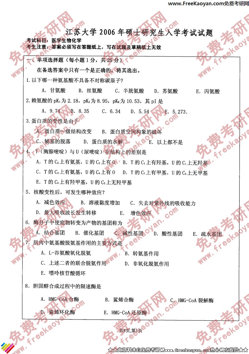 专业课考研经验 本站小编 FreeKaoyan 2018-01-22江苏大学2006年考研真题-药学综合