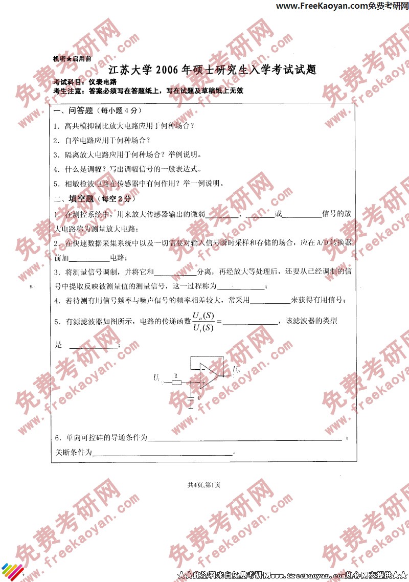专业课考研经验 本站小编 FreeKaoyan 2018-01-22江苏大学2006年考研真题-信号与系统