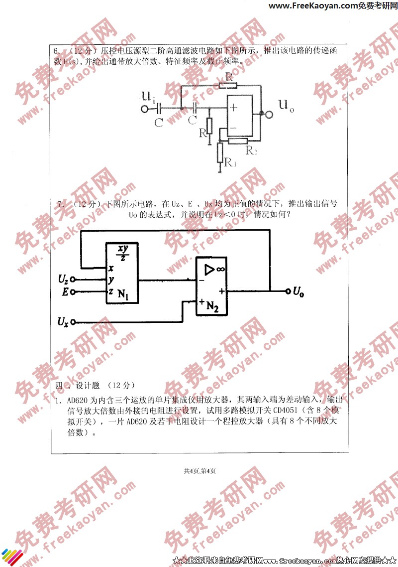 江苏大学2006年考研真题-仪表电路(4)