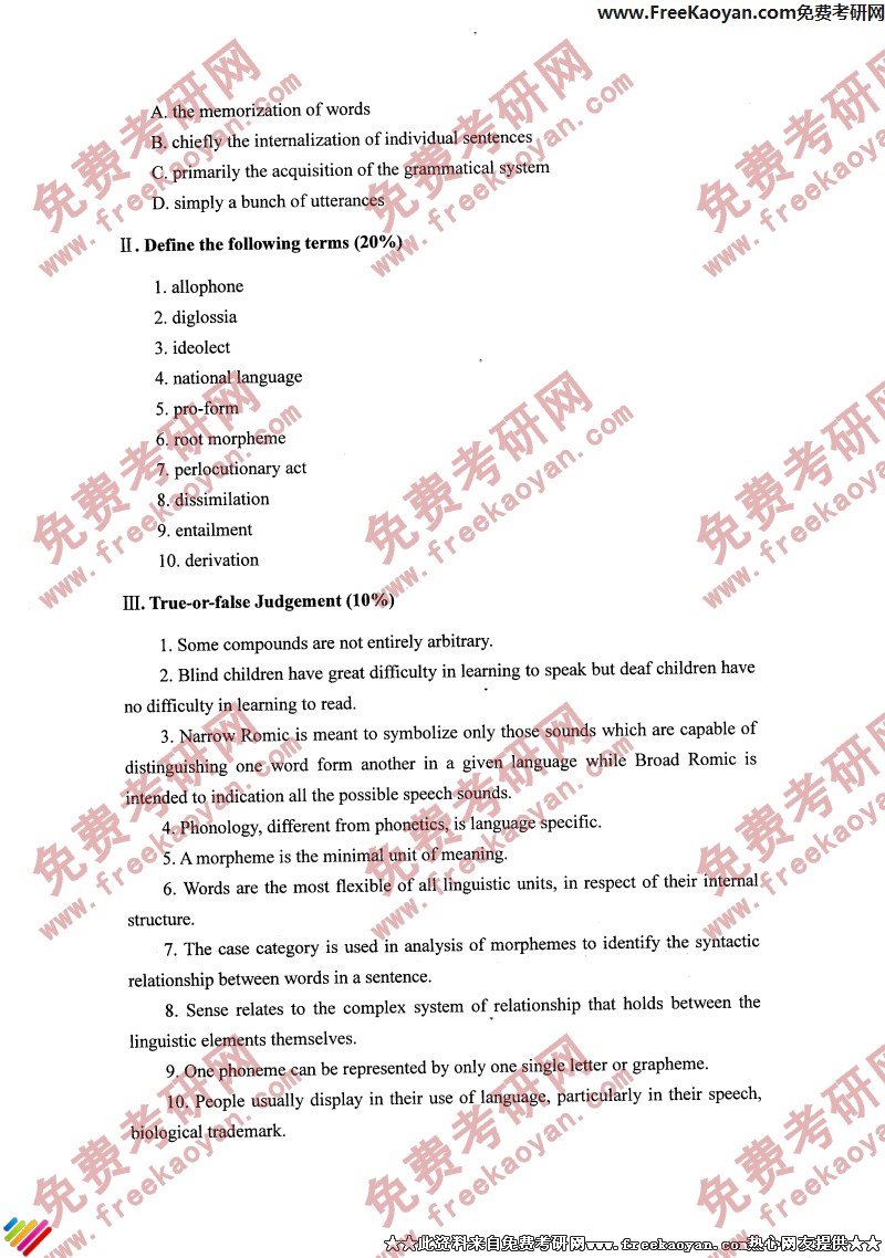 相关话题/考研真题 江苏大学 英汉 英语语言学