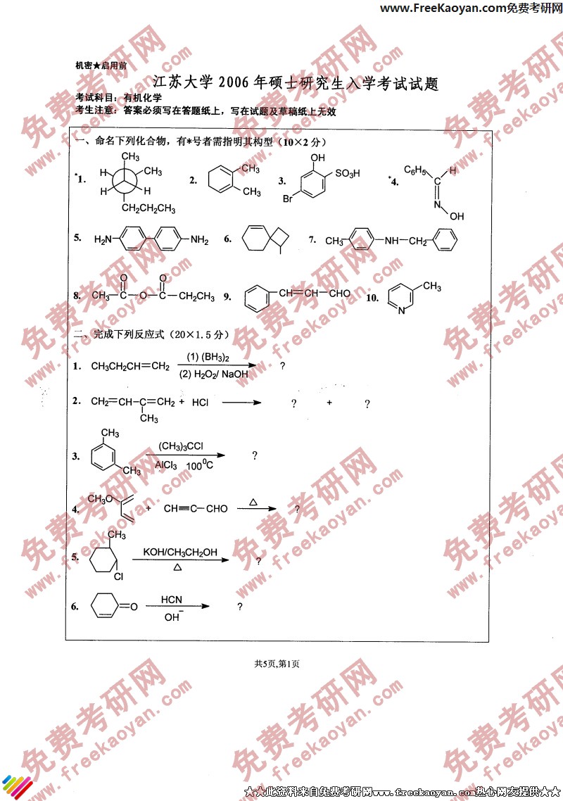 专业课考研经验 本站小编 FreeKaoyan 2018-01-22江苏大学2006年考研真题-无机化学