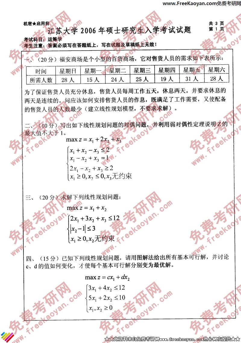 专业课考研经验 本站小编 FreeKaoyan 2018-01-22江苏大学2006年考研真题-信号与系统