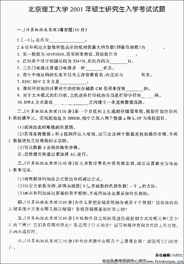 相关话题/考研真题 计算机 北京理工大学 原理