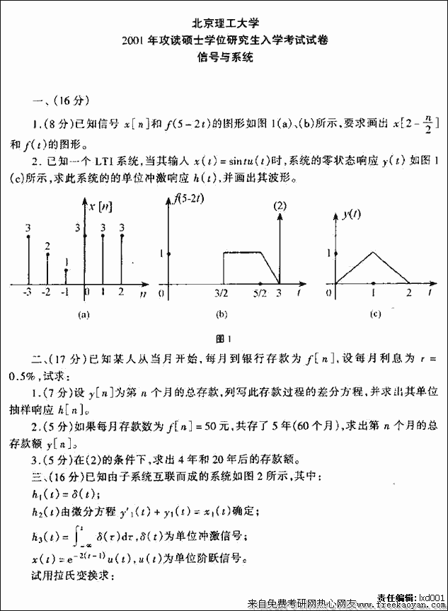 专业课考研经验 本站小编 FreeKaoyan 2018-01-22北京理工大学2001年考研真题-电路分析基础