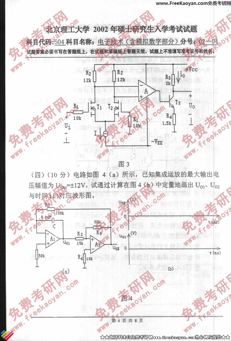 北京理工大学2002年考研真题-电子技术(含模拟数字部分)(4)