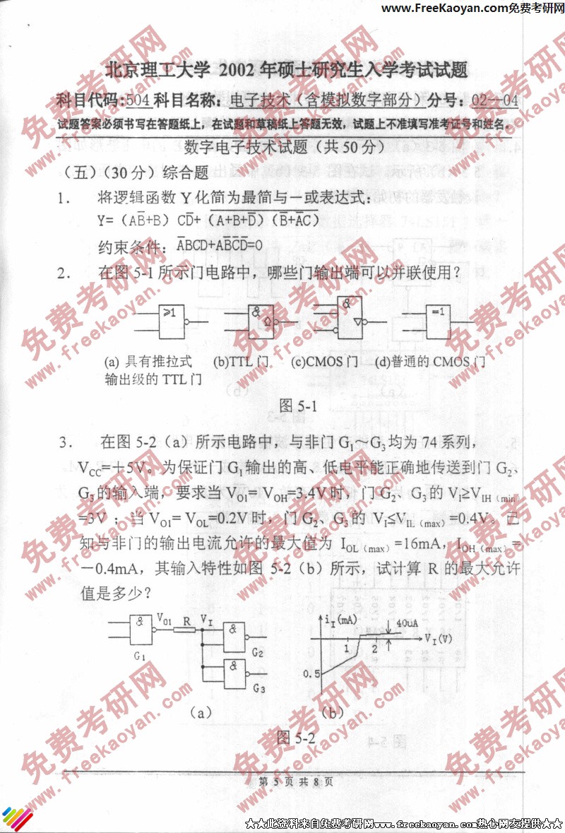 北京理工大学2002年考研真题-电子技术(含模拟数字部分)(5)