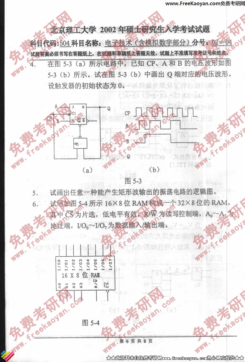 北京理工大学2002年考研真题-电子技术(含模拟数字部分)(6)