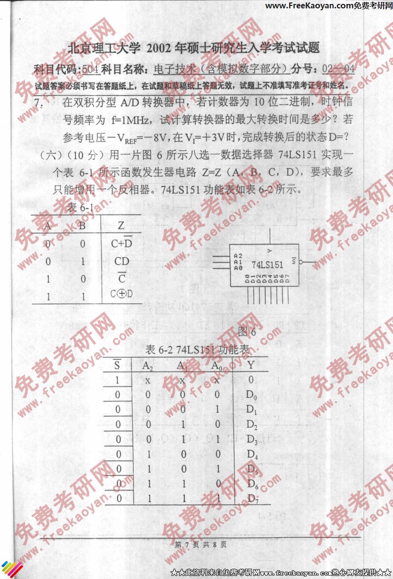 北京理工大学2002年考研真题-电子技术(含模拟数字部分)(7)