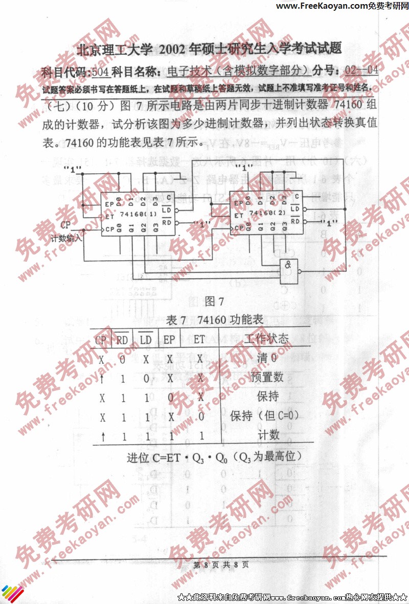 北京理工大学2002年考研真题-电子技术(含模拟数字部分)(8)