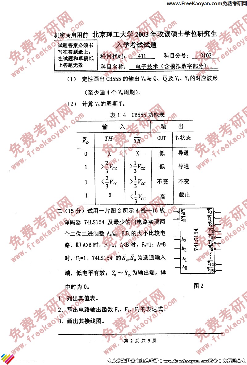 北京理工大学2003年考研真题-电子技术(含模拟数字部分)(2)