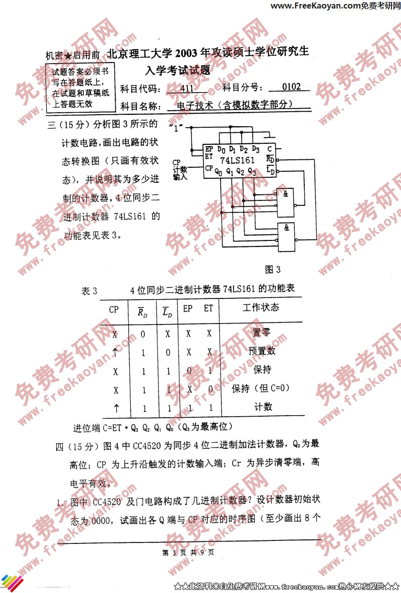 北京理工大学2003年考研真题-电子技术(含模拟数字部分)(3)
