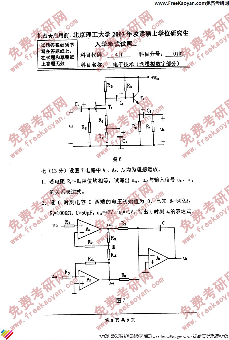 北京理工大学2003年考研真题-电子技术(含模拟数字部分)(8)