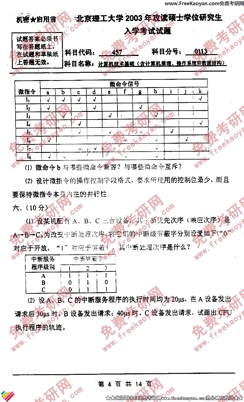 北京理工大学2003年考研真题-计算机技术基础(含计算机组成原理、操作系统和数据结构)(4)