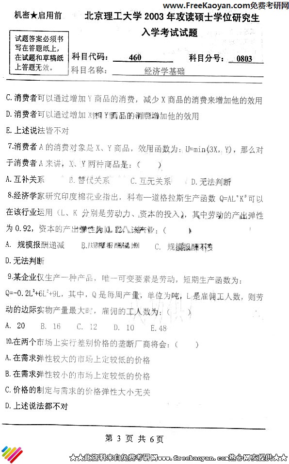 专业课考研经验 本站小编 FreeKaoyan 2018-01-22北京理工大学2003年考研真题-计算机技术基础(含计算机组成原理、操作系统和数据结构)