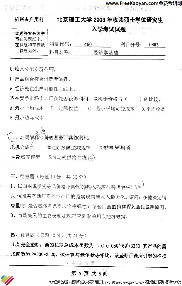 专业课考研经验 本站小编 FreeKaoyan 2018-01-22北京理工大学2003年考研真题-计算机技术基础(含计算机组成原理、操作系统和数据结构)