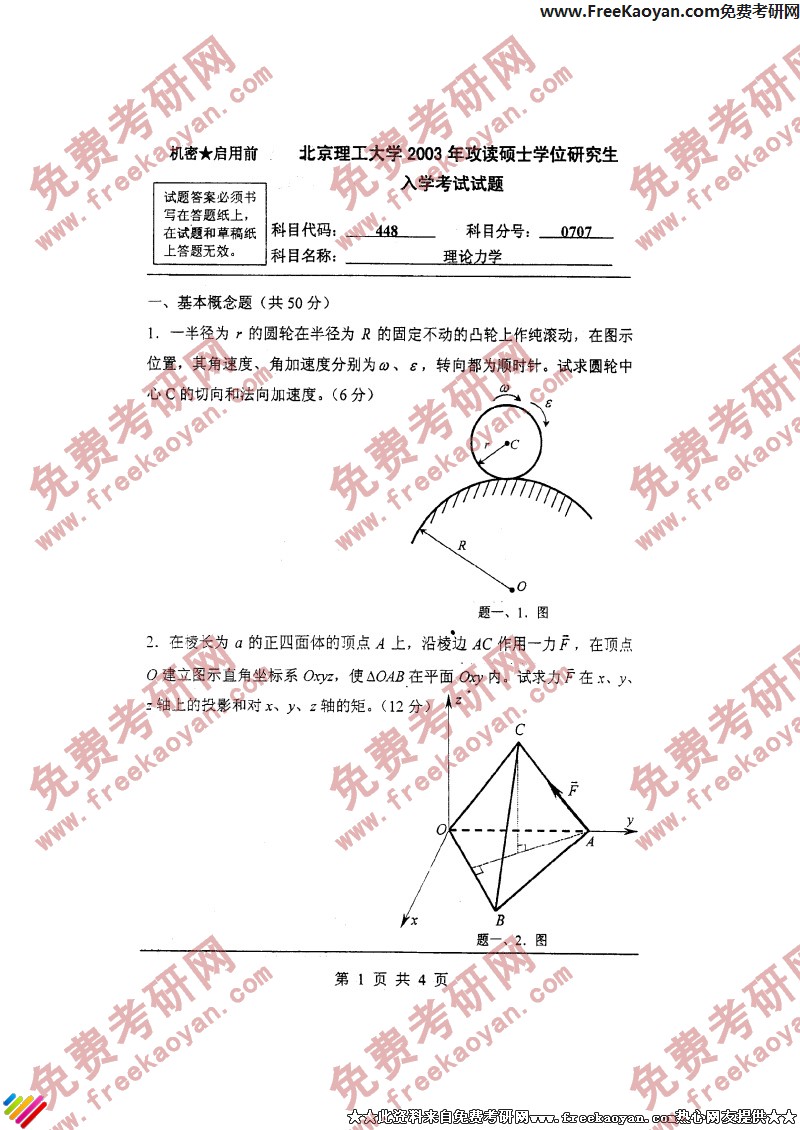 专业课考研经验 本站小编 FreeKaoyan 2018-01-22北京理工大学2002年考研真题-理论力学