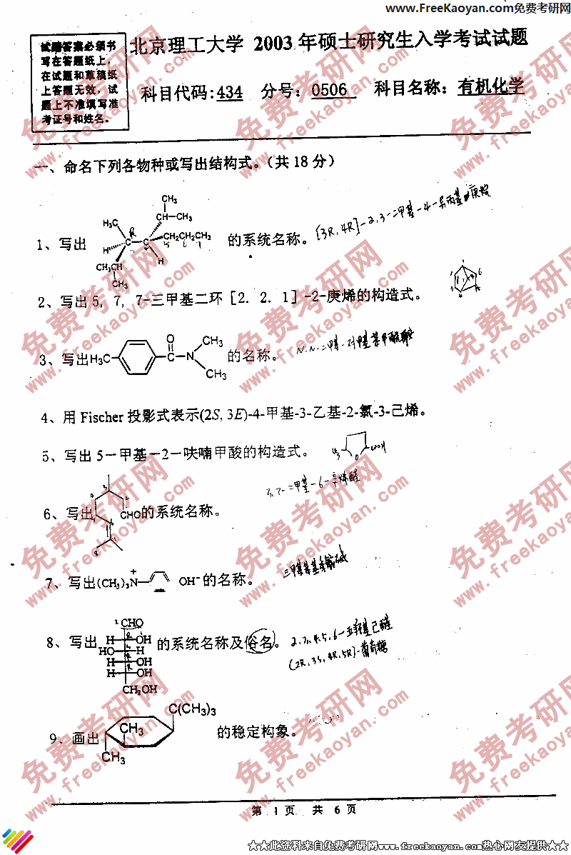专业课考研经验 本站小编 FreeKaoyan 2018-01-22北京理工大学2003年考研真题-计算机技术基础(含计算机组成原理、操作系统和数据结构)
