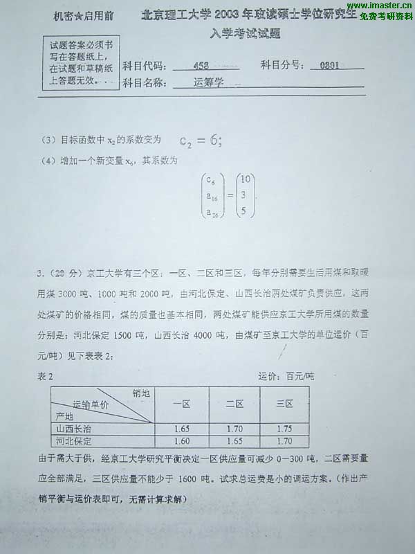 专业课考研经验 本站小编 FreeKaoyan 2018-01-22北京理工大学2002年考研真题-运筹学