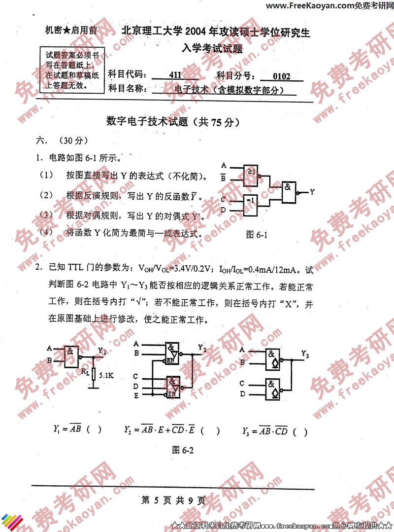 北京理工大学2004年考研真题-电子技术(含模拟数字部分)(5)