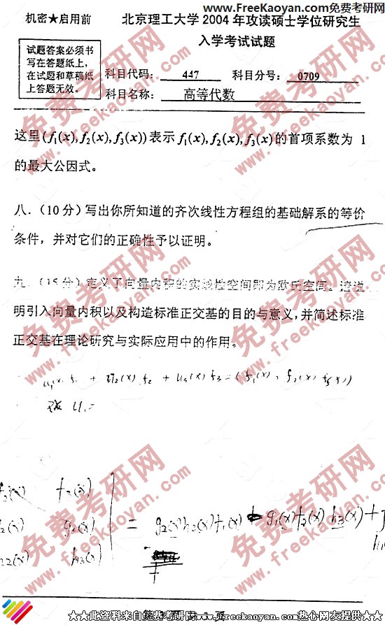 专业课考研经验 本站小编 FreeKaoyan 2018-01-22北京理工大学2003年考研真题-高等代数