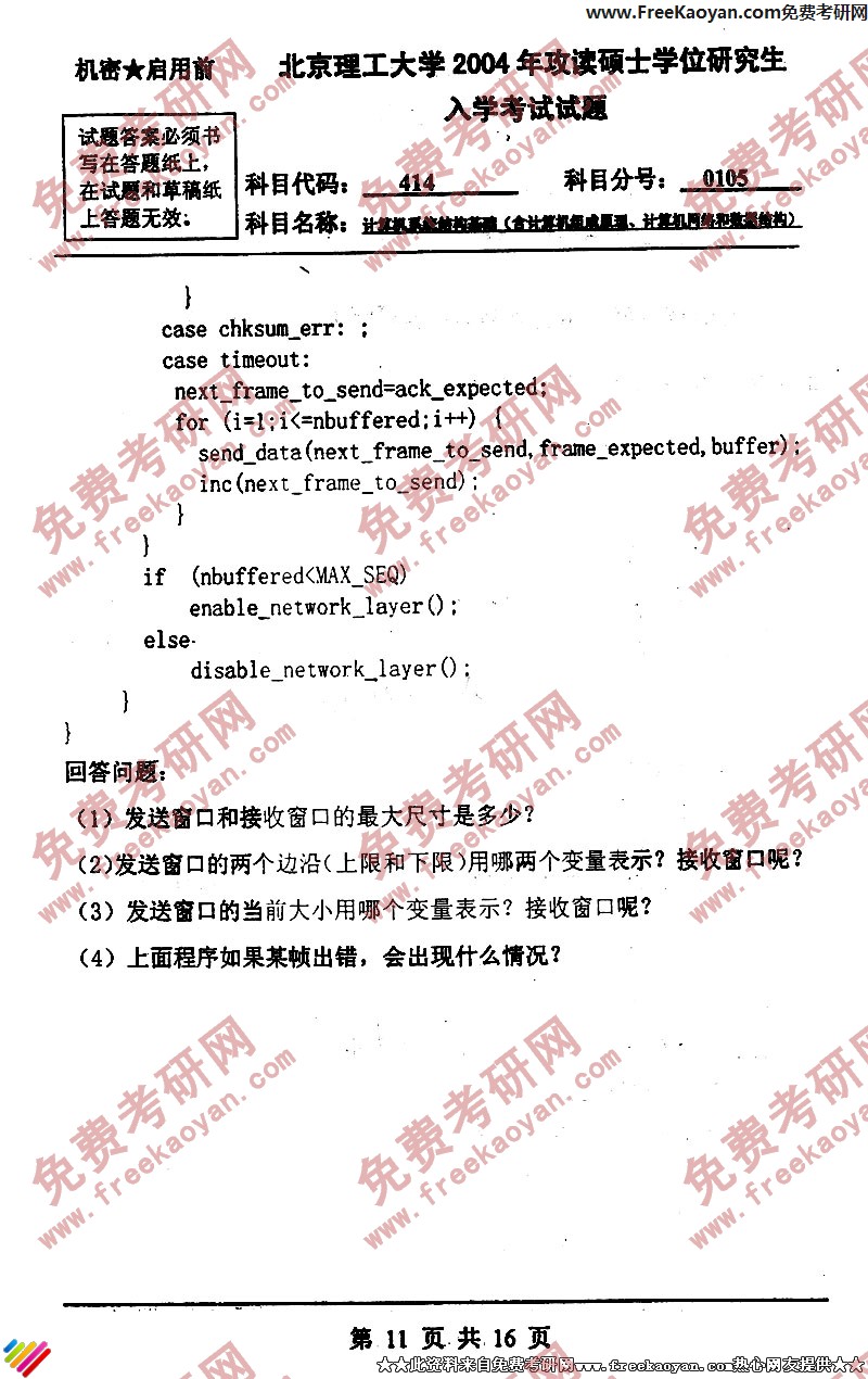 北京理工大学2004年考研真题-计算机技术基础(含计算机组成原理、操作系统和数据结构)