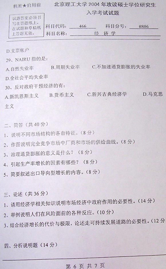 北京理工大学2004年考研真题-经济学基础(6)