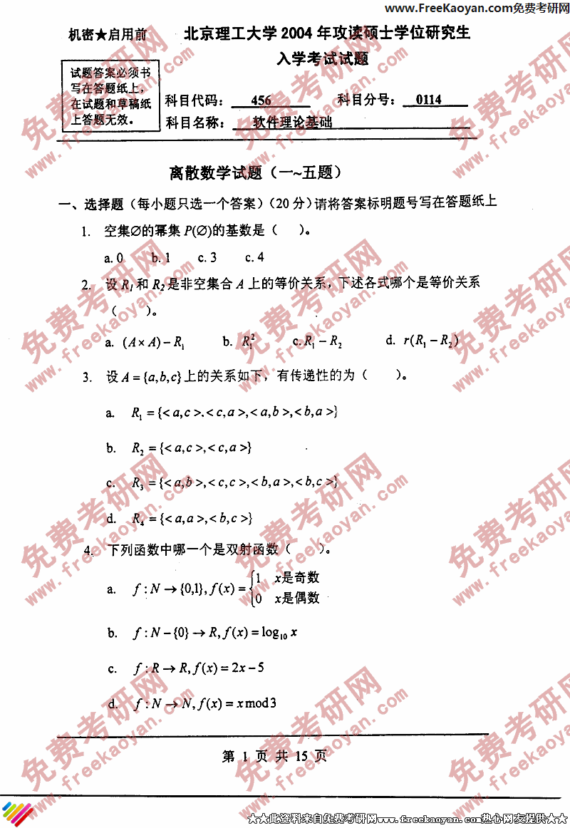 专业课考研经验 本站小编 FreeKaoyan 2018-01-22北京理工大学2004年考研真题-计算机技术基础(含计算机组成原理、操作系统和数据结构)