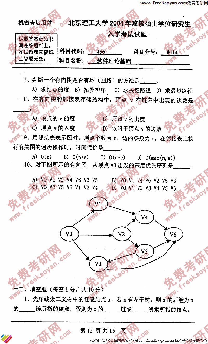 专业课考研经验 本站小编 FreeKaoyan 2018-01-22北京理工大学2004年考研真题-计算机技术基础(含计算机组成原理、操作系统和数据结构)