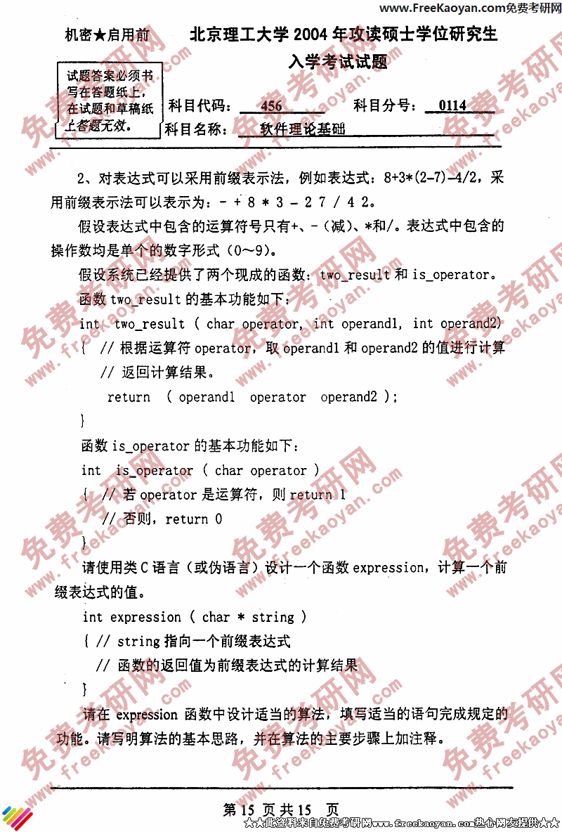 专业课考研经验 本站小编 FreeKaoyan 2018-01-22北京理工大学2004年考研真题-计算机技术基础(含计算机组成原理、操作系统和数据结构)