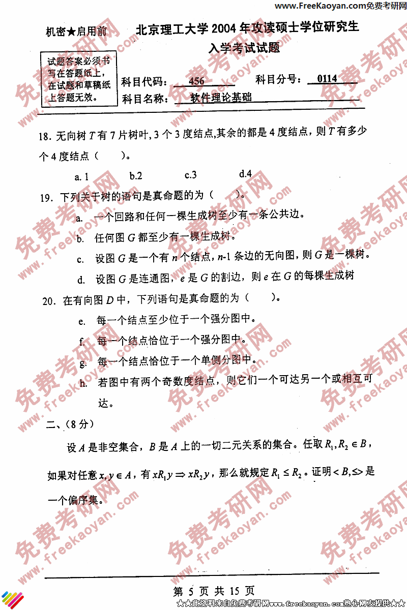 专业课考研经验 本站小编 FreeKaoyan 2018-01-22北京理工大学2004年考研真题-计算机技术基础(含计算机组成原理、操作系统和数据结构)