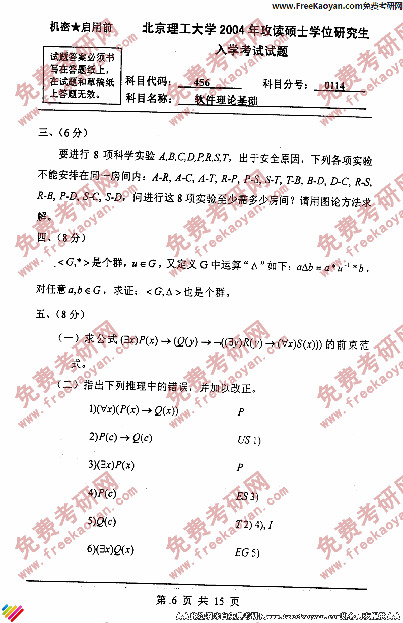 专业课考研经验 本站小编 FreeKaoyan 2018-01-22北京理工大学2003年考研真题-软件理论基础