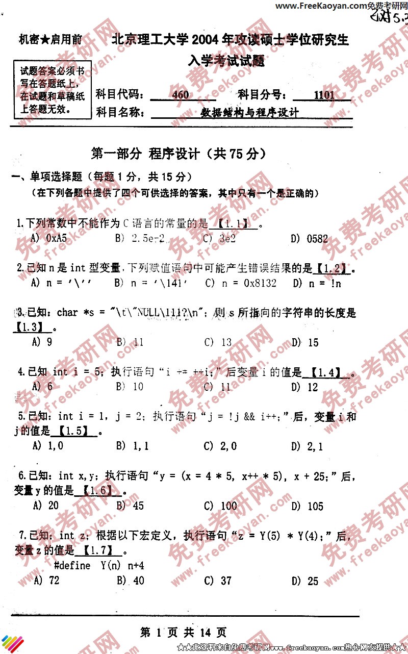 相关话题/考研真题 数据结构 北京理工大学 程序设计