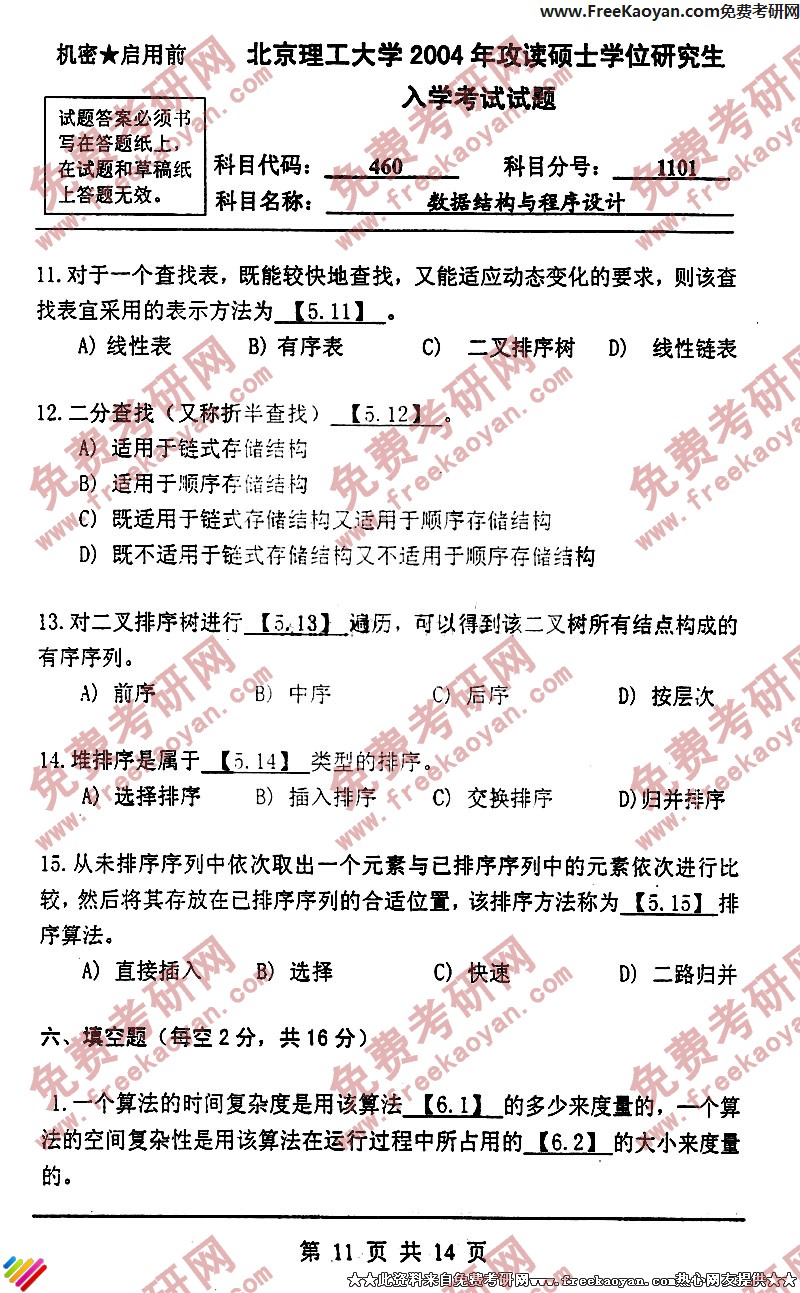 北京理工大学2004年考研真题-数据结构与程序设计(11)