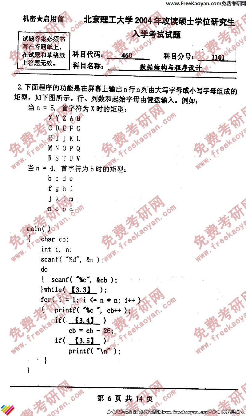 北京理工大学2004年考研真题-数据结构与程序设计(6)