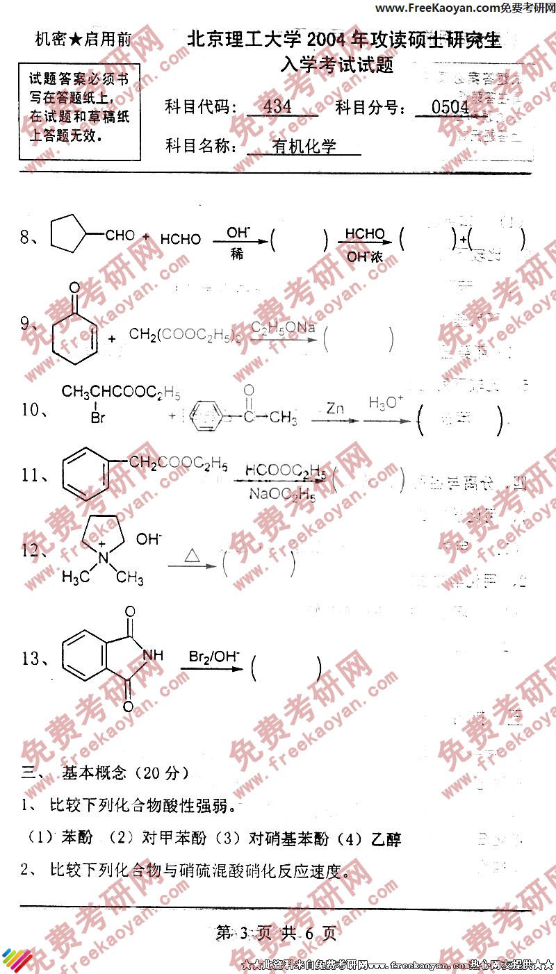 专业课考研经验 本站小编 FreeKaoyan 2018-01-22北京理工大学2003年考研真题-有机化学