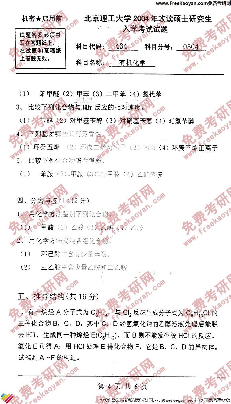 专业课考研经验 本站小编 FreeKaoyan 2018-01-22北京理工大学2003年考研真题-有机化学
