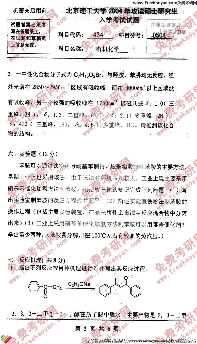 专业课考研经验 本站小编 FreeKaoyan 2018-01-22北京理工大学2003年考研真题-有机化学