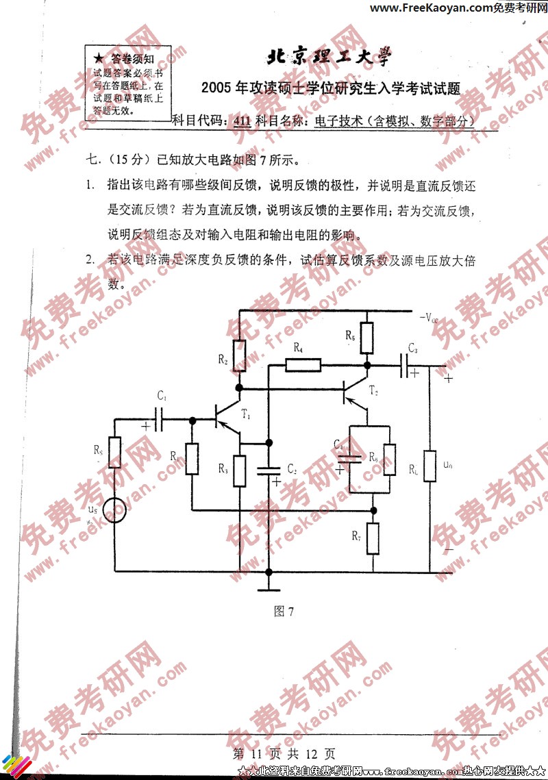 北京理工大学2005年考研真题-电子力学(含模拟、数字部分)(11)