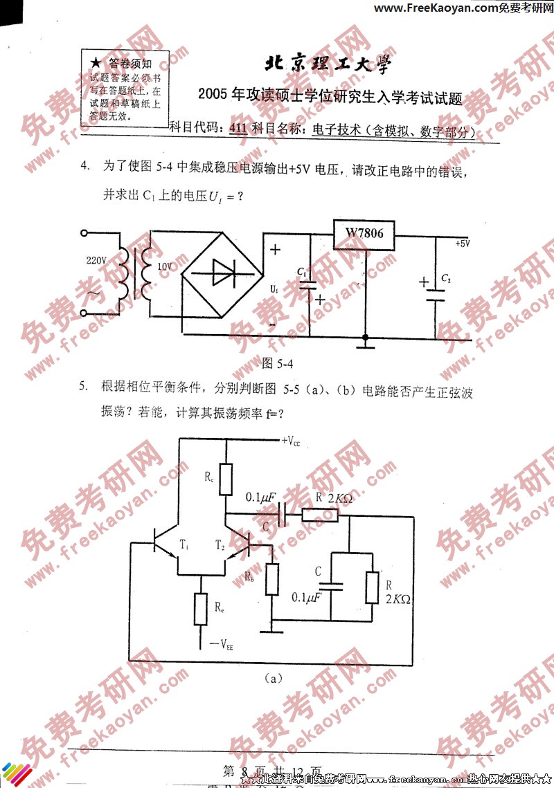 北京理工大学2005年考研真题-电子力学(含模拟、数字部分)(8)