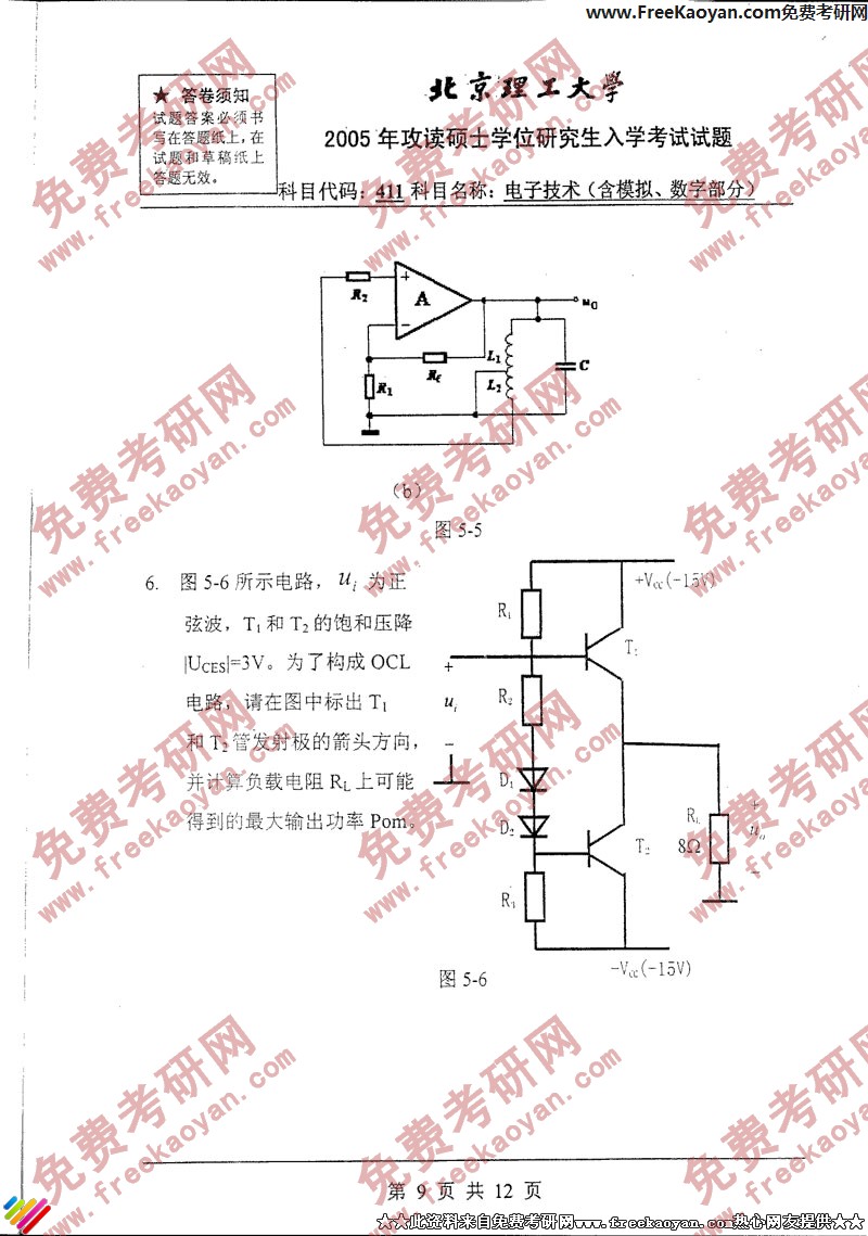 北京理工大学2005年考研真题-电子力学(含模拟、数字部分)(9)