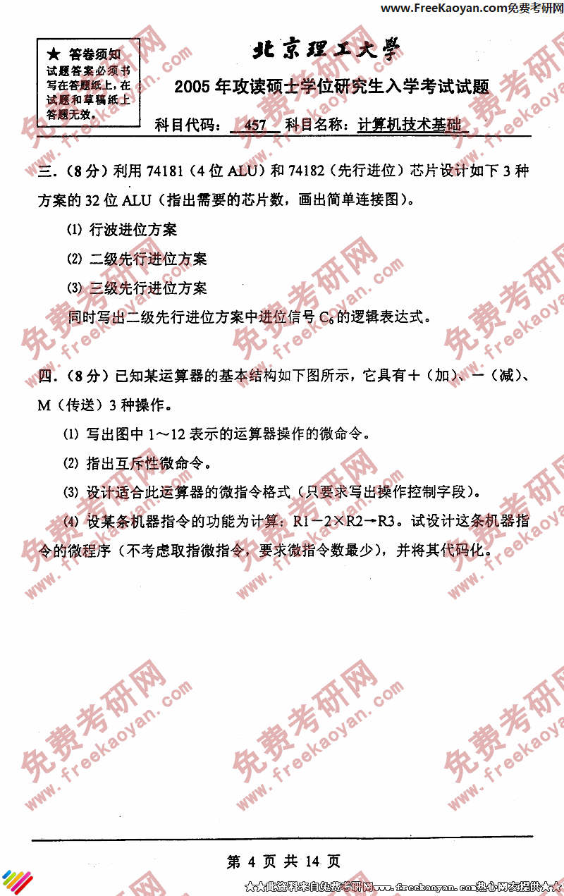 北京理工大学2005年考研真题-计算机技术基础(含计算机组成原理、操作系统和数据结构)(4)