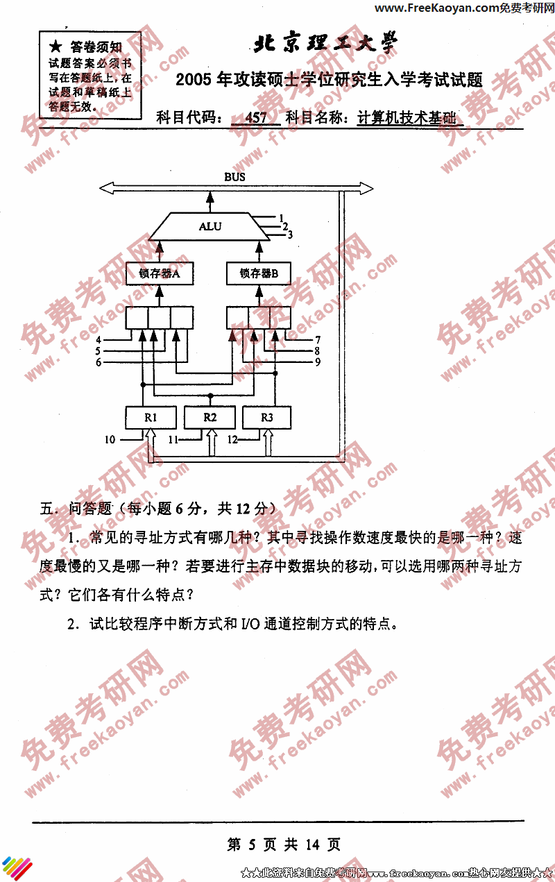 北京理工大学2005年考研真题-计算机技术基础(含计算机组成原理、操作系统和数据结构)(5)