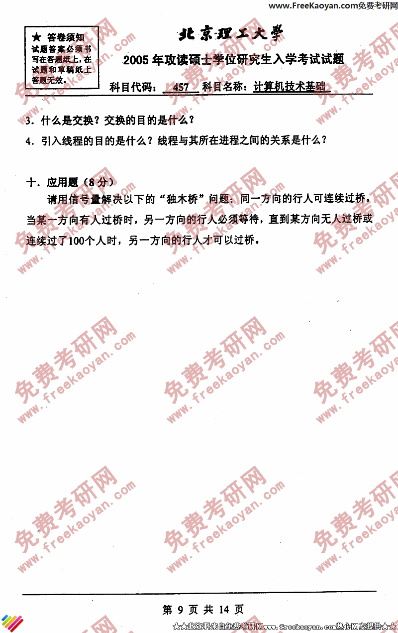 北京理工大学2005年考研真题-计算机技术基础(含计算机组成原理、操作系统和数据结构)(9)