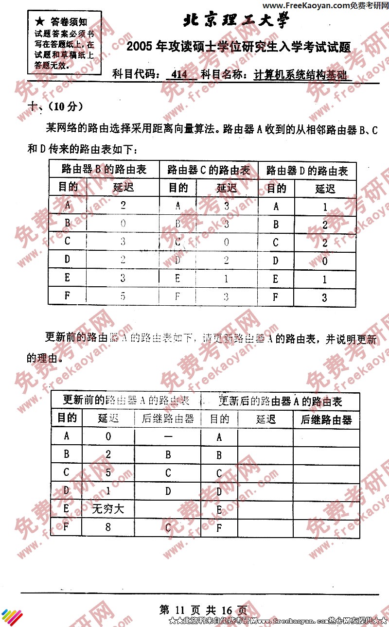 专业课考研经验 本站小编 FreeKaoyan 2018-01-22北京理工大学2005年考研真题-计算机技术基础(含计算机组成原理、操作系统和数据结构)