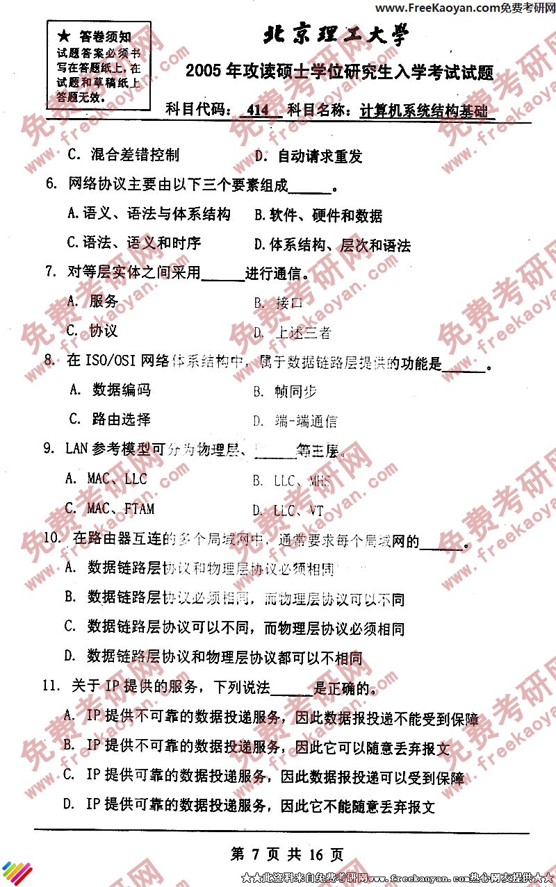 专业课考研经验 本站小编 FreeKaoyan 2018-01-22北京理工大学2005年考研真题-计算机技术基础(含计算机组成原理、操作系统和数据结构)