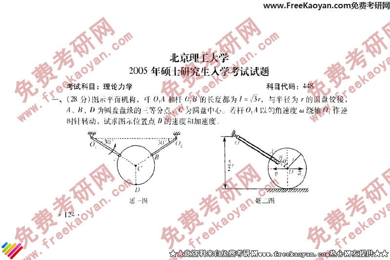 北京理工大学2005年考研真题-理论力学