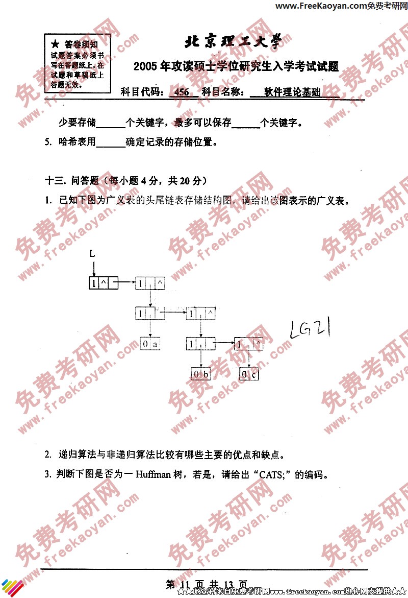 专业课考研经验 本站小编 FreeKaoyan 2018-01-22北京理工大学2005年考研真题-计算机技术基础(含计算机组成原理、操作系统和数据结构)