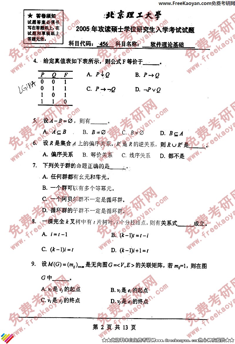 专业课考研经验 本站小编 FreeKaoyan 2018-01-22北京理工大学2004年考研真题-软件理论基础